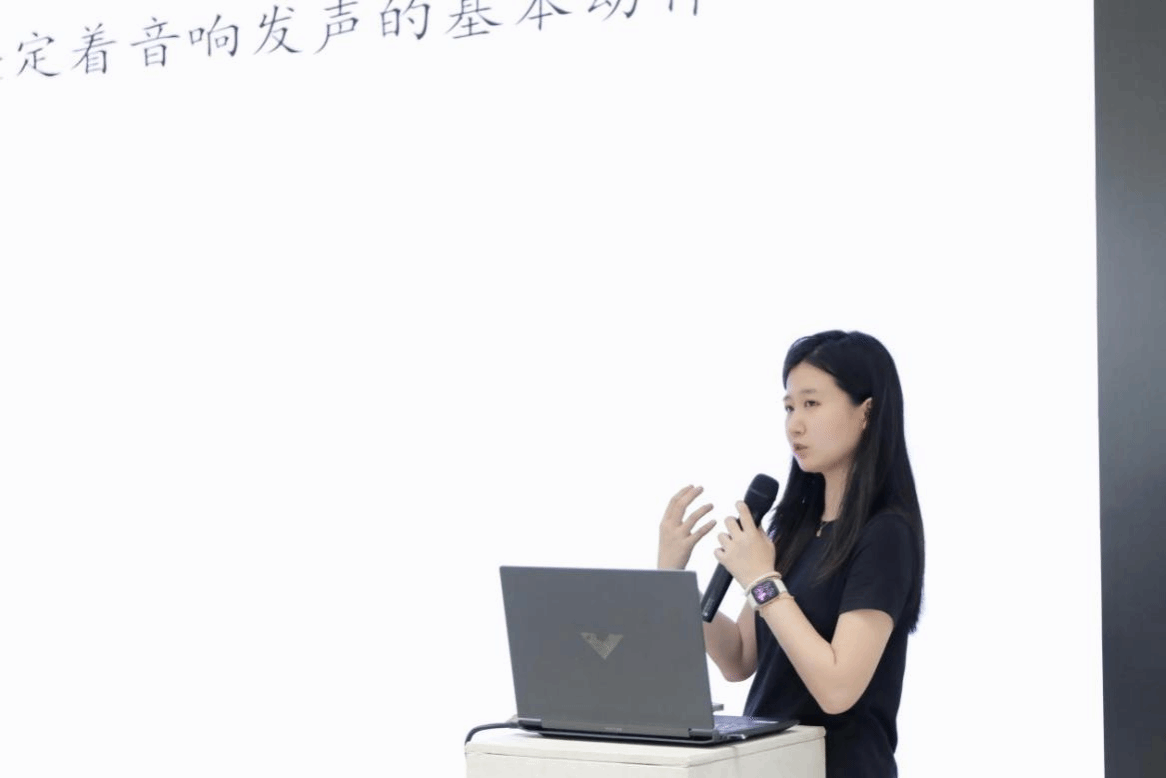随后,林奕馨以《筝韵身姿——古筝音乐姿态表演的艺术表达》为主题进行了精彩演讲。她结合著名古筝演奏家王中山演绎的《枫桥夜泊》视频片段,从“表演姿态”理论出发,深入剖析了古筝演奏中气息、身姿与音乐表达的内在联系。