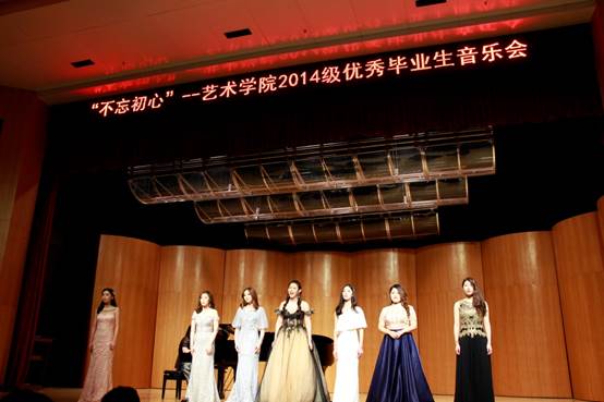 在艺术学院音乐系老师们的精心指导下,经过认真筹备与排练,2014级音乐系的同学们再一次站在这个熟悉的舞台上,为全校师生呈现一场精彩的毕业音乐会。本场音乐会是2014级音乐系毕业班四年大学生活中众多场音乐会中的其中一场,却也是有着最特别意义的一场,对14级同学们而言,毕业演出不仅仅是他们对自己四年专业学习成果的一次展示,更是用歌声、琴声来向辛勤培育了自己四年的学校、老师传达感激之情的一个良机。