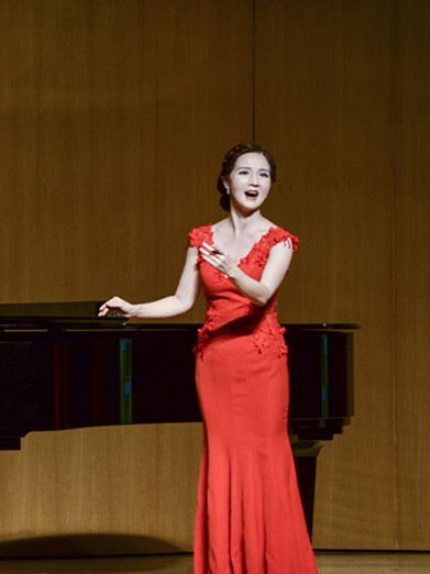 音乐会下半场,刘湘老师身着一袭红裙,深情演唱了《一首桃花》、《我的爱将与你相伴终生》,细腻的情感表达与娴熟的演唱完美结合。改编自新疆民歌的《青春小鸟》,轻巧的花腔,跳动的旋律,表达了对逝去青春的感慨。别样的曲风,别样的风情,别样的感受,感染了全场观众。
