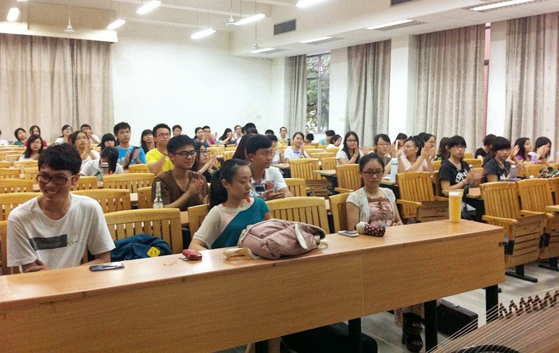 “跨界表演团队”此次派出了有古筝、琵琶以及二胡等大家较为熟悉的乐器为现场同学做展示。通过主课老师刘贝妮民乐队队长李林森的介绍,大家也从整体上解了民乐现在当下社会中的发展状况和民乐的民族性特色。