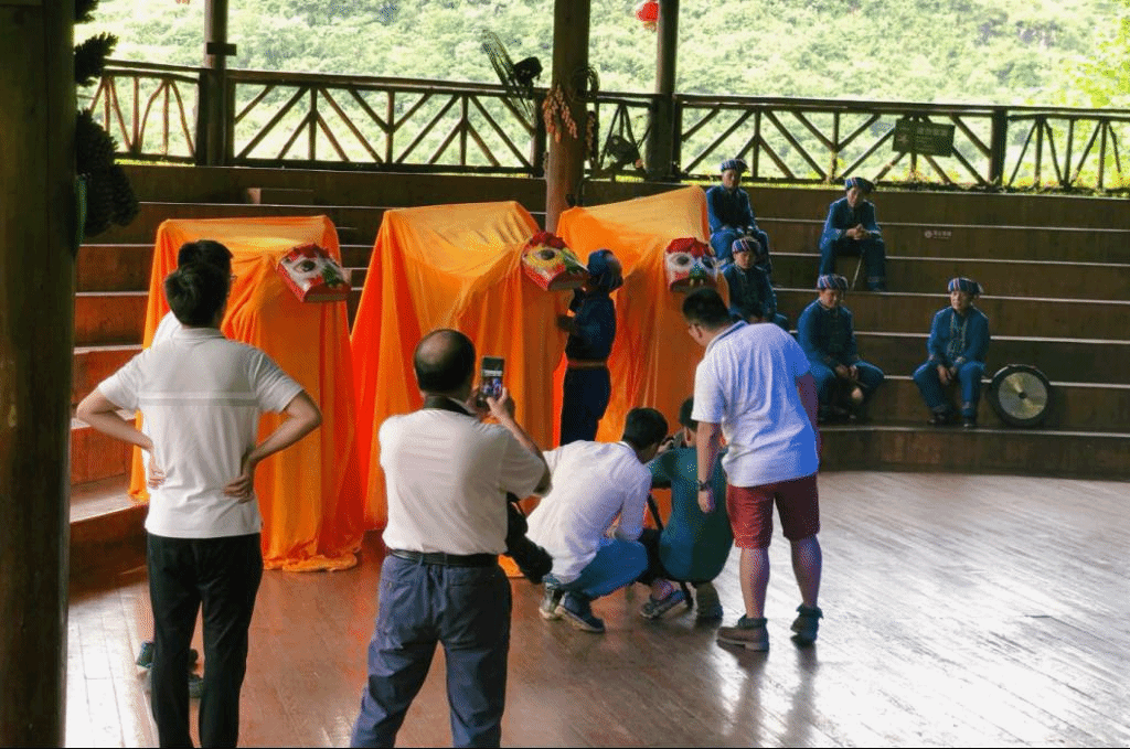 自6月9日开始,刘晶鑫老师及文创工作室的学生团队随同央视拍摄组赴清远连州进行了为时3天的拍摄。摄制组先后前往连州市文化馆、连州市国际摄影博物馆、湟川三峡和三水瑶族乡对布袋木狮舞完整的表演过程以及文创团队的调研创作过程进行了实景拍摄,采录了师生团队对布袋木狮舞传承艺人的采访和研究。
