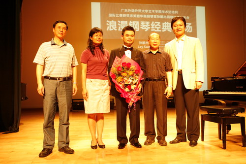 孙鹏杰别出心裁地用英文做开场白,并用英文介绍了他即将演奏的曲目舒伯特的《居所》,在优雅与高贵、舒缓与灵动的乐声里,孙鹏杰先生把钢琴的魅力演绎得淋漓尽致。随后他连续演奏了《纺车旁的玛格丽特》、《第六维也纳之夜》以及肖邦的《波兰舞曲》、《马祖卡》等浪漫音乐作品。最后,他以罗伯特·舒曼的《交响练习曲》完成了音乐之旅。