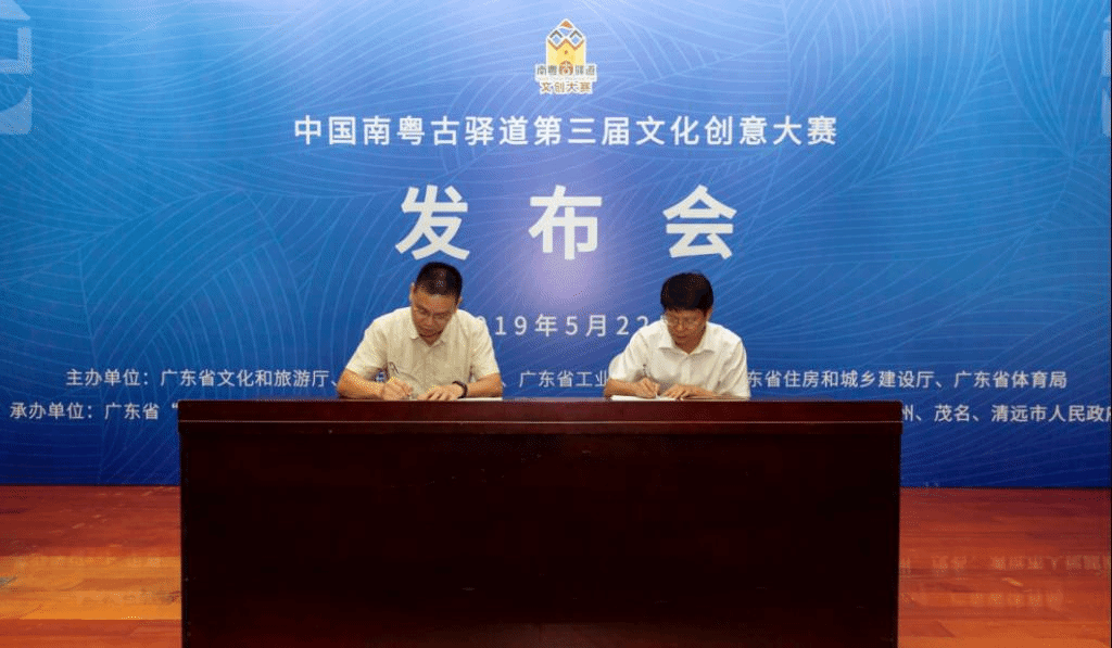 新闻发布会后,广东外语外贸大学艺术学院副院长李志刚与广轻控股集团工美部副部长钟加泰上台签署南粤古驿道文创作品《盘瑶萌狮U盘》授权生产协议。《盘瑶萌狮U盘》是广东外语外贸大学艺术学院设计系师生团队基于第二届南粤古驿道文化创意大赛获奖作品《盘瑶萌狮微信表情 IP 设计》完成的衍生品设计。盘瑶萌狮微信表情以连州传统的布偶木狮作为原型,通过卡通化的表现手法和数字媒体技术对其进行再设计,让印象中高冷呆板的艺术经典变得鲜活水灵,同时借由网络社交平台,以最低的成本让布偶木狮这种古老的艺术形象在短时间内迅速传播。