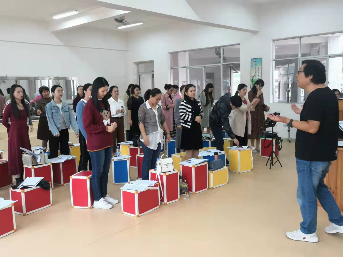 本次培训是粤港澳大湾区的一次美育教育联动活动,因此,培训分为两个专场同时进行——合唱指挥专场和泥塑艺术专场:合唱指挥专场邀请的是国内知名指挥家、广东外语外贸大学艺术学院张彬教授;泥塑艺术专场邀请的是澳门著名的手工艺大师朱帼雄老师。紫金县中小学老师踊跃报名,均想借此次培训来提高自身的教学能力,报名人数远超限额,为了保证理想的培训效果,最终筛选出70位中小学老师参加(其中30人参加合唱指挥培训,40人参加泥塑艺术培训)。艺术学院对参训老师进行严格的考勤管理,并要求其能将所学带入到日常教学中,结合当地文化特色,进行推广。