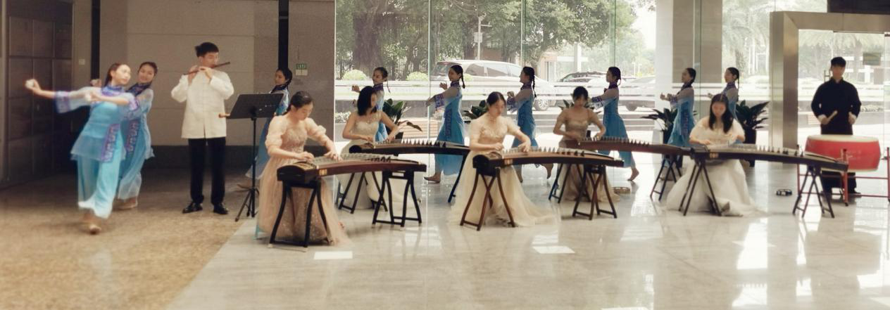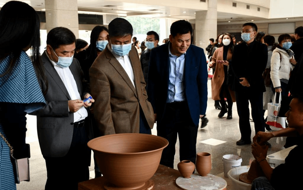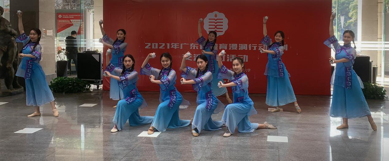 会后参会领导、专家参观了广东省教育厅美育浸润行动计划展板。艺术学院舞蹈专业学生结合广东外语外贸大学中华优秀传统文化传承基地表演了《客家杯花舞》,音乐国际传播专业学生表演民乐重奏《将军令》,获得了与会领导和专家的一致好评。广东外语外贸大学艺术学院中华优秀传统文化传承基地专家还在现场进行了陶艺表演,引起领导、专家的极大兴趣。
