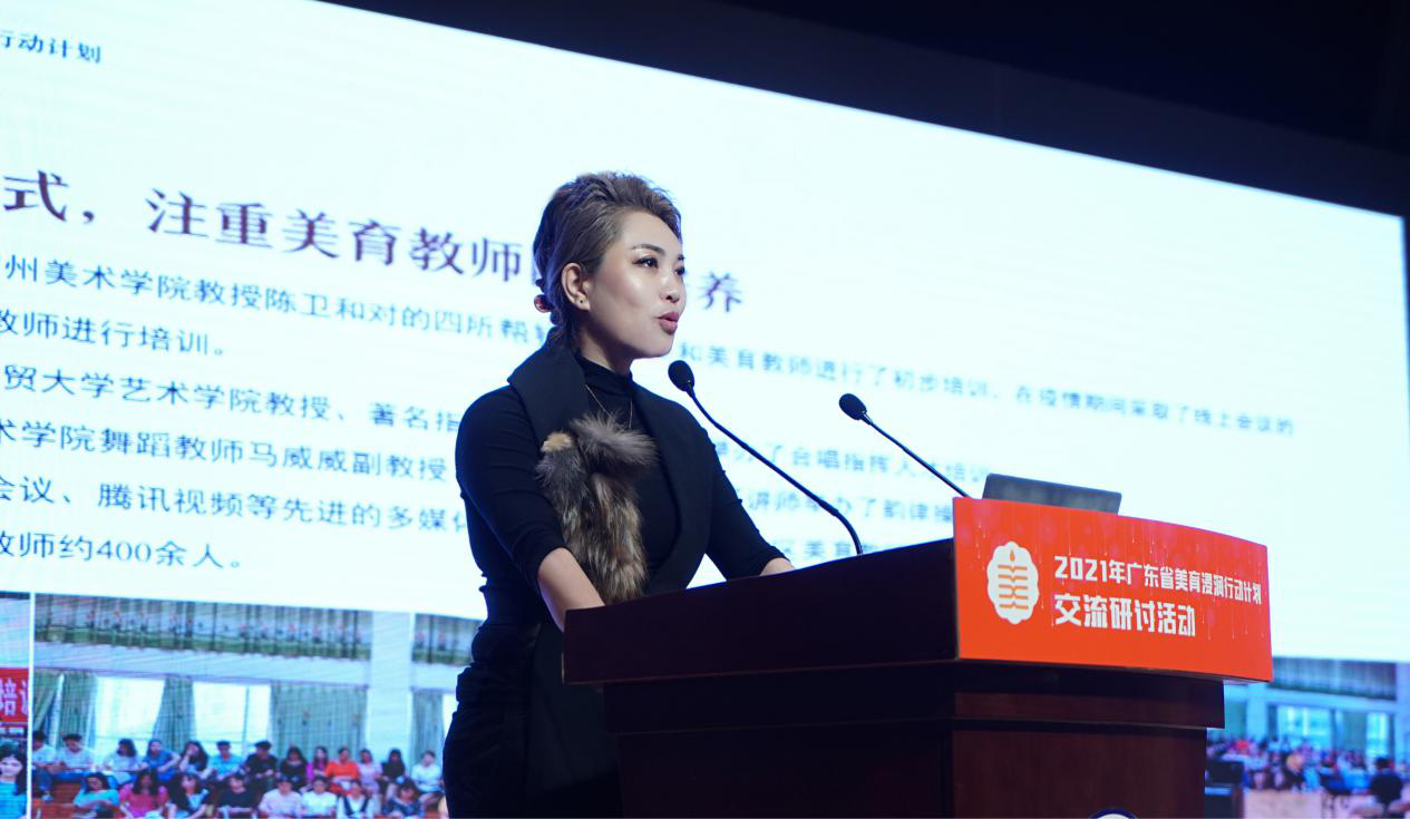 广东省美育教育指导委员会秘书长、艺术学院副院长(主持工作)王凯宏教授作广东外语外贸大学美育浸润行动计划工作汇报,汇报从认真组织实地调研工作,制定切实可行的美育浸润行动实施计划;采取多种形式,注重美育教师队伍培养;发挥当地文化作用,建立适合开展的多门美育专项课程;积极开展丰富多彩的学校实践活动;营造格调高雅、富有美感、充满朝气的校园文化;拿来主义,学习其他地区美育先进经验;发挥美育浸润行动计划秘书长单位作用,做好沟通和传播工作等7个方面总结了广东外语外贸大学美育浸润行动计划,就打造广东省“美育教育品牌”做了规划,并对2021年工作计划进行了说明。