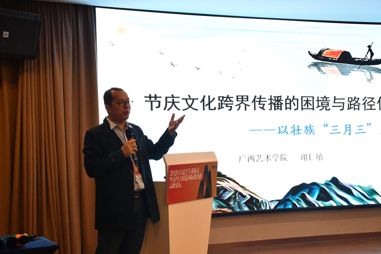 广西艺术学院人文学院院长谢仁敏以“节庆文化跨界传播的困境与路径优化”为题,结合南粤古驿道的传播,深入剖析了媒介传播与文化交流的困境,他提出要理顺好文化与商业的逻辑关系,做好传播内容的筛选与表达,并在传播中实现文化的再生产。