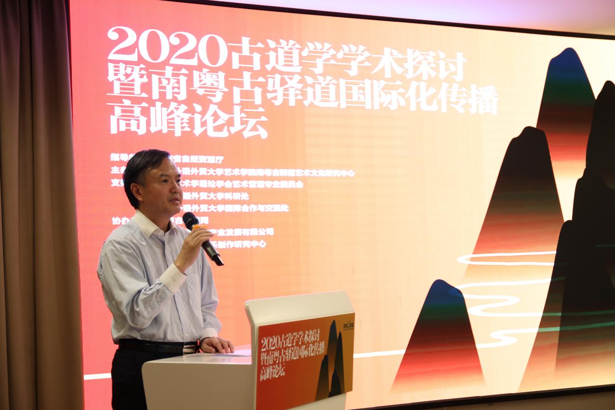 11月29日,由广东省自然资源厅指导、广东外语外贸大学艺术学院南粤古驿道艺术文化研究中心(以下简称“研究中心”)主办的“2020古道学学术探讨暨南粤古驿道国际化传播高峰论坛”在广州召开。本次论坛是南粤古驿道文化学术交流和推广活动系列活动之一,主题为“融合和创新、保护和开发南粤古驿道资源,推进古道学研究”。广东省自然资源厅南粤古驿道保护利用工作领导小组副组长,二级巡视员方为民,中国艺术学理论学会艺术管理专业委员会会长、博士生导师田川流,方塘智库创始人叶一剑,北京电影学院美术学院教授宫林,广西艺术学院人文学院院长谢仁敏,广东省建筑设计研究院党委书记曾宪川等来自全国各地的30余名专家学者齐聚羊城,共同探讨建立完善“古道学”及南粤古驿道品牌的国际化。