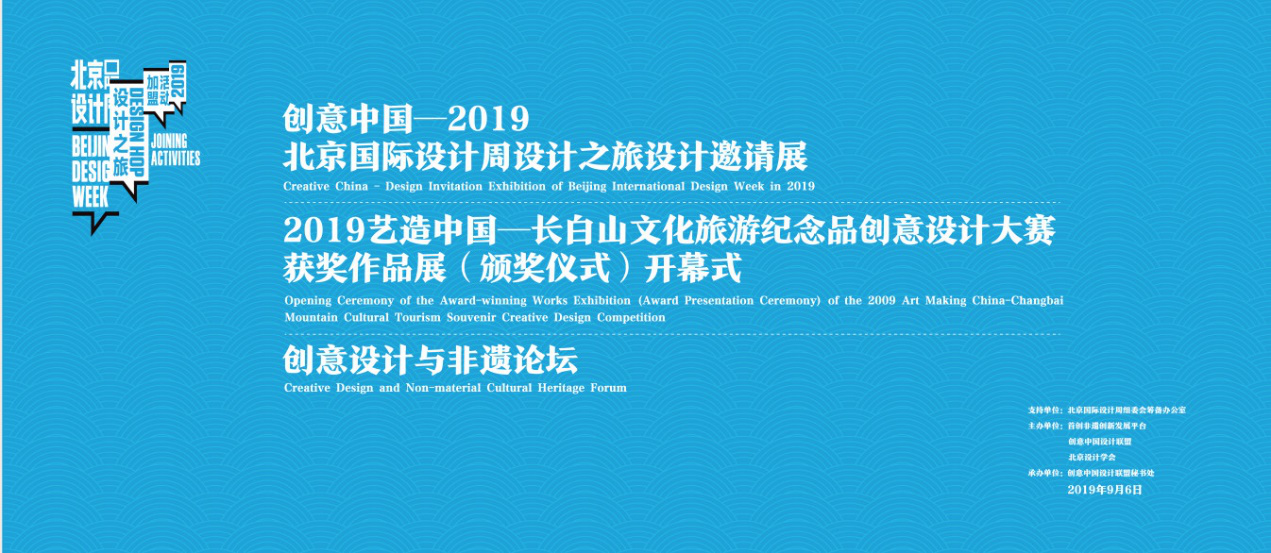 北京国际设计周“创意中国-2019北京国际设计周设计之旅设计邀请展”开幕式暨北京国际设计周“创意设计与非遗”论坛由首创非遗创新发展平台、创意中国设计联盟、北京设计学会联合主办,本次设计邀请展共展出设计作品130件。创意设计与非遗论坛邀请了英国剑桥大学Richard Leaver教授,清华大学博士生导师张夫也教授,北京市政协常委、副秘书长、民盟北京市委专职副主委宋慰祖,创意中国设计联盟执行主席张震甫教授,日本神户艺术工科大学大田尚作教授,广东外语外贸大学艺术学院关雪仑教授,武汉工业设计协会会长博士生导师陈汗青教授等九位学者和业界专家进行了专题演讲。