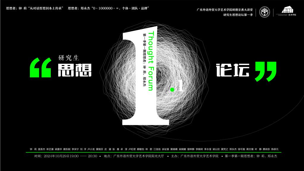 为激发研究生问题意识,提高学生学术研究能力、系统化思维能力和思想表达能力,艺术学院策划了明德至善大讲堂之研究思想论坛活动,论坛以学生系列学术思考成果分享形式进行,论坛第一季于10月29日晚正式拉开序幕。第一期研究生思想论坛的思想分享者是23级音乐国际教育与传播方向研究生钟莉和23级数字媒体与文化传播设计方向研究生郑永杰。
