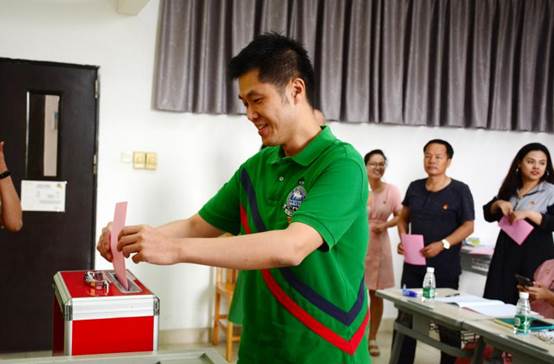 全体师生正式党员认真审议并举手表决,全票审议通过大会选举办法,通过选举工作总监票人、监票人、计票人名单。大会严格遵照选举办法进行无记名投票。经选举,当选为麦培年、张莉、李志刚、王蓓、李亚静5名同志为新一届艺术学院党总支委员。