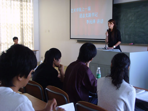2007年11月10日早上8:30,在这秋高气爽,阳光明媚的星期六早上,我院团学多名干部干事顶者秋天的睡意,准时地来到我院艺术楼514教室,参加艺术学院首次团学干部干事培训大会。
