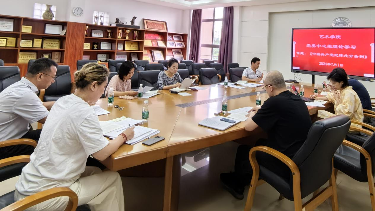 为扎实开展党纪学习教育,7月1日下午,艺术学院党委在艺术楼A301会议室开展中心组理论学习,专题逐条逐句学习研讨《中国共产党纪律处分条例》。会议由学院党委书记卢海清主持,学院党政领导、党支部书记等出席了本次学习研讨会。