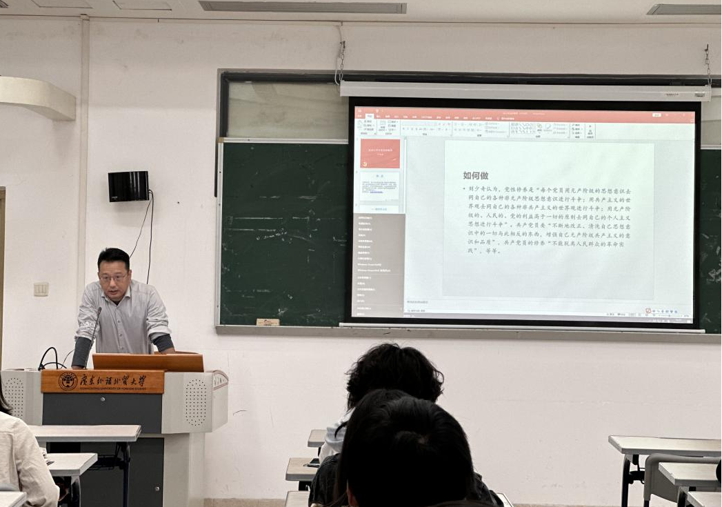 为深入学习贯彻党的二十大精神,加强入党积极分子思想政治教育,2024年3月21日,艺术学院党委书记卢海清在艺术楼B508为学生做“谈大学生党员的修养”的主题党课。艺术学院入党积极分子和发展对象30余人参加。