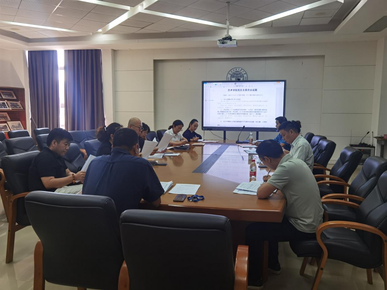 10月11日下午,艺术学院党总支在艺术楼A301会议室召开中心组理论学习会议,学习习近平总书记关于加强党的全面领导和党的建设重要论述,由艺术学院党总支书记卢海清担任主讲人。艺术学院党政领导班子、系部主任、党支部书记等参加会议。