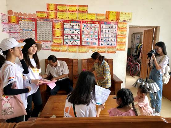 同心筑梦服务队同时深入翁源县各中小学、青少年宫和县城街头小巷,派发问卷3000余份。在青少年宫,负责人向队员详细介绍了翁源县青少年宫的师资情况、生源情况,以及青少年宫美育工作开展的现状,并特别介绍了家庭经济困难学生参加艺术类课程的情况。在各中小学,服务队进入每个班级派发问卷,并和学校师生座谈。