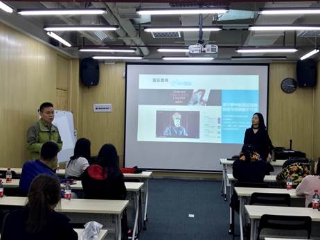 酷狗音乐总裁助理江明秦首先代表公司对我院师生的到来表示欢迎,并讲解了酷狗音乐的发展历史、直播空间、音乐现场、以及线上线下平台构成等,希望在公司和学院大创中心已签订的框架合作协议基础上,以艺术学院为中心,辐射到学校乃至广州大学城各所高校,把全新的“众创空间”打造成一个服务于大学城学生的造星“梦工厂”。随后的学生提问环节中,现场气氛热烈。