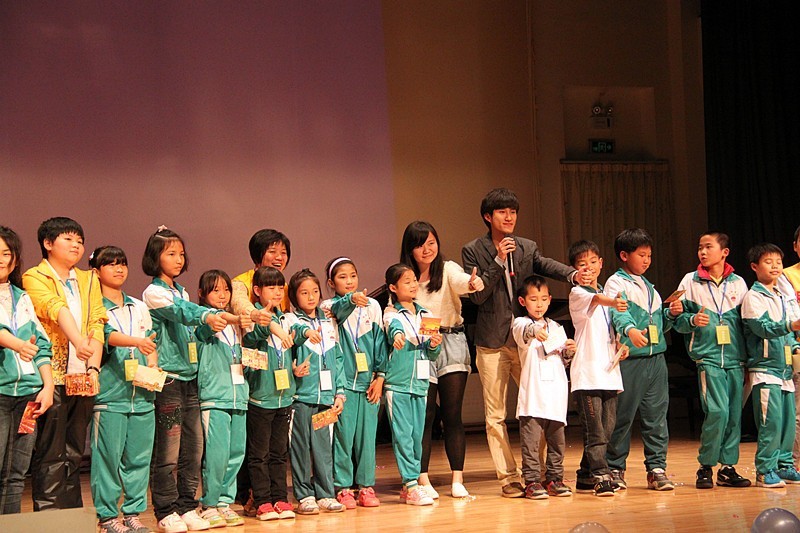 本次活动在志愿者与孩子们的游戏中拉开帷幕。舞台上身着校服的孩子们沉浸在“踩报纸”游戏中不亦乐乎,游戏以男生女生竞赛的方式进行着,孩子们互相搀扶,试图让更多的同伴站在同一张报纸上。天真稚气的脸庞洋溢着阳光般的笑容。