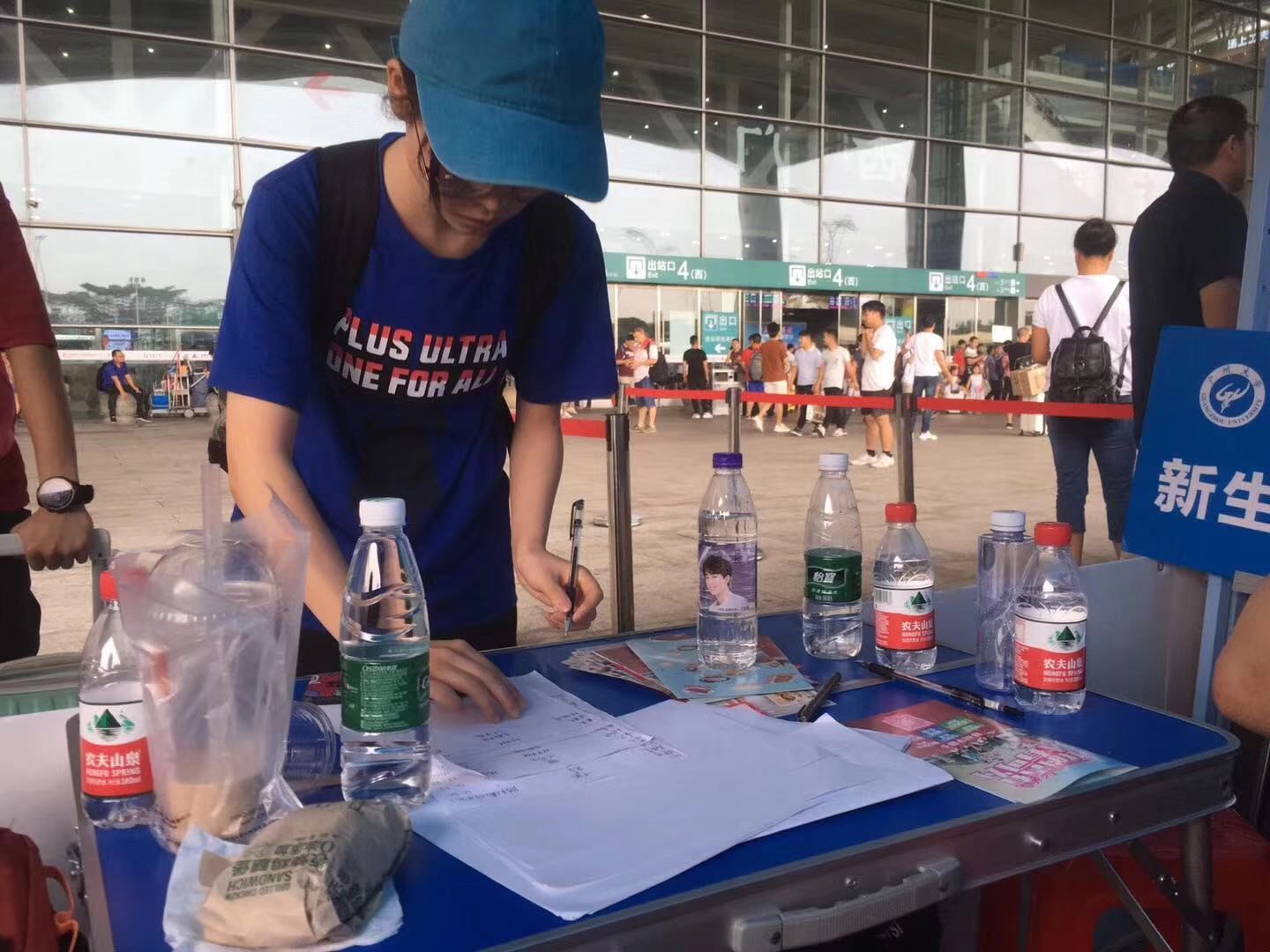 此外,在辅导员谭珺如的带领下,有近20名学院志愿者在广州南站设点迎接广外新生。